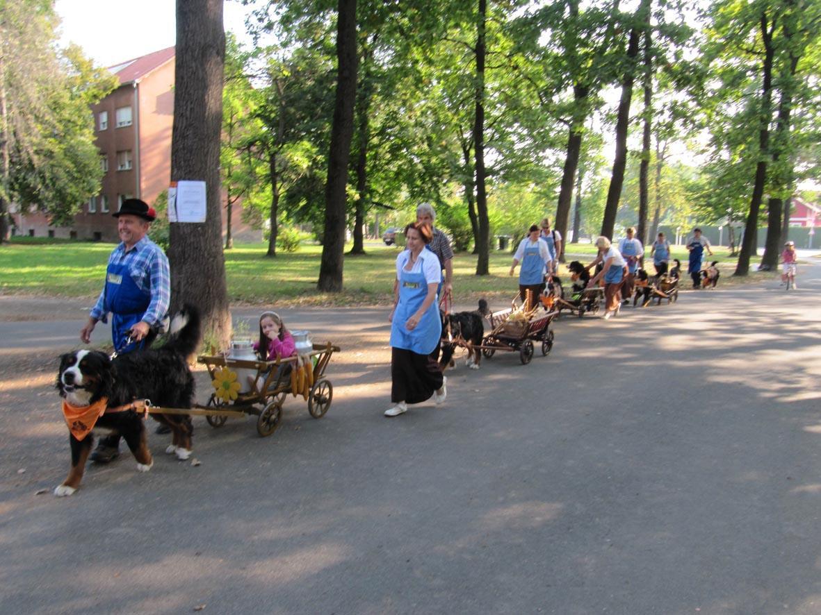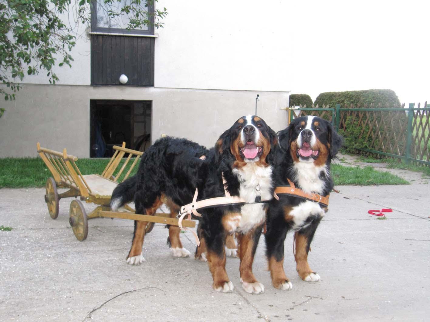 Pred desetimi leti je naš prvi bernski planšar Seti vlekel voziček na raznih prireditvah. Neverjetno ponosen je bil na to svoje poslanstvo, ki ga je opravljal z največjim veseljem. Ni bil razstavni kuža, bil pa je v vlogi vlečnega psa pravi predstavnik svoje pasme. S prihodom psičke Jutte v našo družino smo dobili še enega »vozičkarja«, z Juttino hčerko Jessi že tretjega. Veselje do vleke smo prenesli tudi na Juttine potomce in njihove lastnike. Pet potomcev iz Juttinega prvega legla vleče vozičke, mladički drugega legla se navajajo na hrup lesenih koles in čakajo, da bodo odrasli in dovolj močni za vleko. Lesene vozičke smo dobili na kmetijah, kjer so jih včasih uporabljali pri delu, zdaj pa so jim že nekaj časa nekoristno ležali po kleteh. Naši moški so jih popravili in usposobili za vleko. Najstarejši med njimi šteje že več kot sto let.