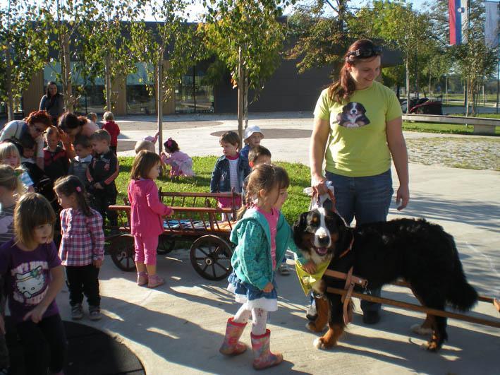 4.oktobra smo prav posebno praznovali Dan živali. Dopoldan smo preživeli med otroki vrtca Kidričevo in Cirkovce. Naši pridni vlečni psi – Jutta, Jessi, Jolly, Jascha in Josch so se izkazali in popeljali na vozičkih kar vse otroke v obeh vrtcih, skupaj 275 otrok.