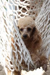 Asko je seveda hišni pes in glede na to, da kodri ne puščajo dlake, gre lahko tudi na posteljo. Spi najraje na hrbtu s tačkami v zrak.