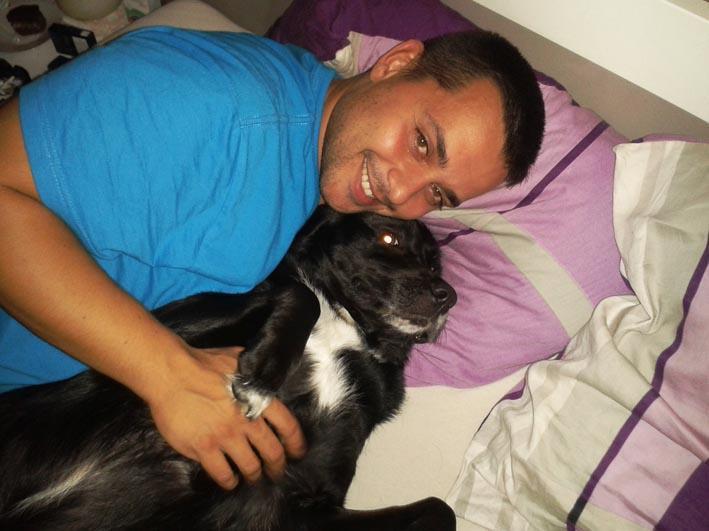 Ni čisto tako. Res je sicer, da imam simpatično kosmatinko, a k hiši sem prišel jaz, ne ona (smeh). Oziroma drugače povedano, pri hiši je bila pred menoj. Pravzaprav in čisto pravilno je psica moje partnerice Urške, ki jo je že imela, še preden sva se spoznala in zaljubila. Je pa res, da je postala tudi moja.