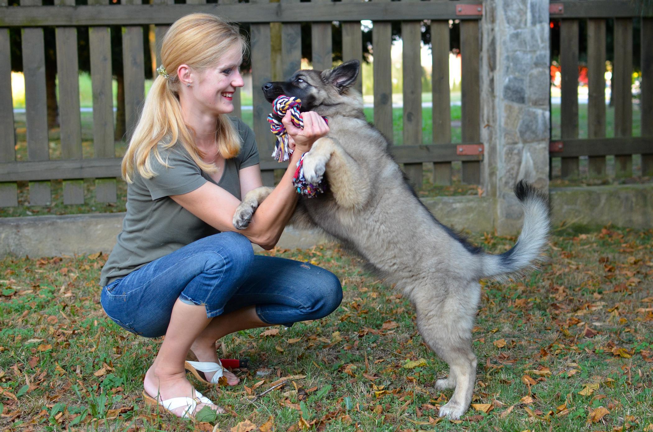 Prvi šolski dan smo vsi nestrpno pričakovali, in priznati moram, da tisti dvonožni člani našega krdela zadnjo noč pred dnevom D skoraj nismo spali, tako smo se veselili pasje male šole. V šolo smo šli seveda vsi – pes in vodnik, pa še mama z dojenčkom na tribuno za spodbudo. Imeli smo veliko mešanih občutkov – ali bomo zmogli, ali smo izbrali pravo šolo, ali moramo nujno spremeniti način hranjenja, kako gresta skupaj pozitivna motivacija in zatezna ovratnica, zakaj nimamo klikerja … Kot največji izziv se je nato izkazala koncentracija. Od mladička je pač težko pričakovati, da bo pozoren in pripravljen na delo celo uro. Imeli smo boljše in slabše dneve, bili so trenutki, ko je Jena z veseljem sodelovala, pa tudi črne oblake, ko je na primer pri sosedih odkrila hrano za mačke, ki je bila velika »jackpot« nagrada, da niti najboljši priboljški niso mogli tekmovati z njo. Pa so vhodna vrata ostala odprta prvič in je stekla k njim, in se je zgodba ponovila drugič, nato je tretjič, raje kot sprehod, izbrala dobrote čez mejo, za katere ji ni bilo treba delati. Situacijo smo vendarle uspeli premagati, čeprav je bil strah, da je pobeg postal že vzorec, kar velik. In včasih je bilo potrebno zares globoko dihati, se obrniti stran in se ohladiti, da smo jo ob prihodu veselo pohvalili. Po nešteto urah za računalnikom smo ob premlevanju sodobne pasje literature na temo pozitivne motivacije vendarle naštudirali nekaj stvari, ki zares učinkujejo. Na žalost so vse, vezane na priboljške, kmalu začasno padle v vodo, saj smo zaradi prebavnih težav prešli na strogo dieto s posebnimi briketi, ki naši punci niso šli posebej v slast, kaj šele, da bi jo motivirali za sodelovanje. Ko smo po dveh tednih odkrili najboljši, najbolj naraven in zdrav priboljšek – meso, so se nam dobesedno odprla nebesa! Tako pridnega psa še nismo videli nikoli, vsaj ne našega. V trenutkih, ko stvari niso šle ravno po načrtu, smo se tolažili, da delamo ogromno na socializaciji in da je mogoče res bolj pomembno, da je prijazna do kužkov, da obožuje otroke in se ne ustraši niti krave niti tovornjaka, kot da na povelje takoj leže. Dobili smo veliko pasjih kolegov; Jena je z njimi izmenjevala prijateljske ugrize, mi pa nasvete in izkušnje.