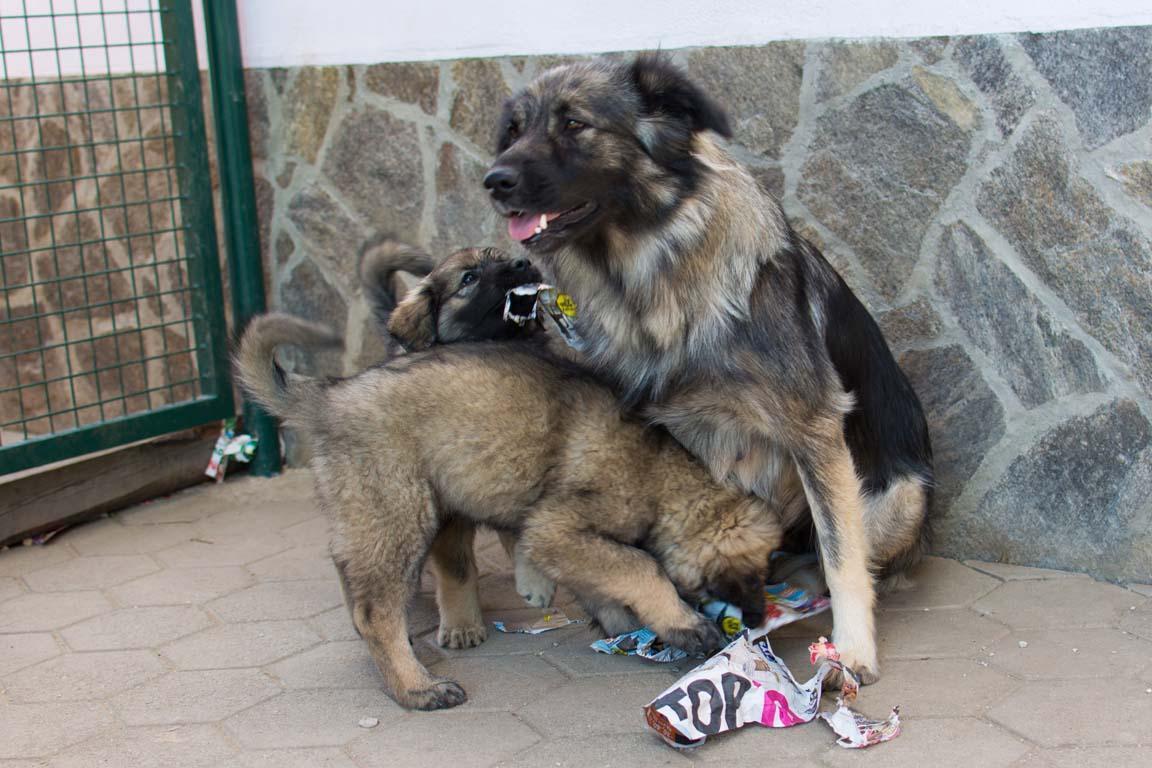 svojih rožnih gredicah. In sosedove punce, ki so že v tistih letih, ko se tudi za doma oblečejo zelo lepo, so izkusile pasje tačke kot šivanke ostre zobke na vsakem centimetru najljubših hlač in cukanje za lase. Sladke male porednosti! Priznam, uživali smo prav vsak trenutek z njimi, in solze, ko so zapuščali dom, so bile preprosto neizogibne. Da denar človeka ne osreči, pes pa, je bilo zelo jasno, ko so se družine odpeljale pasjim dogodivščinam naproti. Morda res z nekaj sto evri manj v denarnici, a tako zelo srečne! Ko so po nekaj dneh začele prihajati fotografije, so žarele od navdušenja. Seveda so bile pospremljene s pripisi »spi z nami – v pesjaku je tako žalostna; domači mački že prvi dan pokaže, da je zdaj nov šef pri hiši; navihanka je trikrat pobegnila k sosedom; najraje grize rododendrome; raje kot brikete ima meso«. Nasmejali smo se do solz! Enake porednosti smo spremljali tudi doma, saj sta Lina in Luna ostali z nami še mesec dni dlje kot drugi mladički in, sodeč po Jeninem navdušenju, so bili to za vse najlepši trenutki. Tako razigrane in nagajive mamice res ne vidiš vsak dan. Naša trava je dobila še nove luknje, ukradene otroške igrače so postale priročna žrtev ne le za majhne pasje zobke, temveč tudi za veliko, močno čeljust naše lepotice, malček pa je bil tolikokrat prevrnjen, poskakan in poljubčkan, da smo že prvi dan nehali šteti. [members_only] Že res, da so vsakodnevni sprehodi in izleti postali za odtenek ali dva bolj naporni –