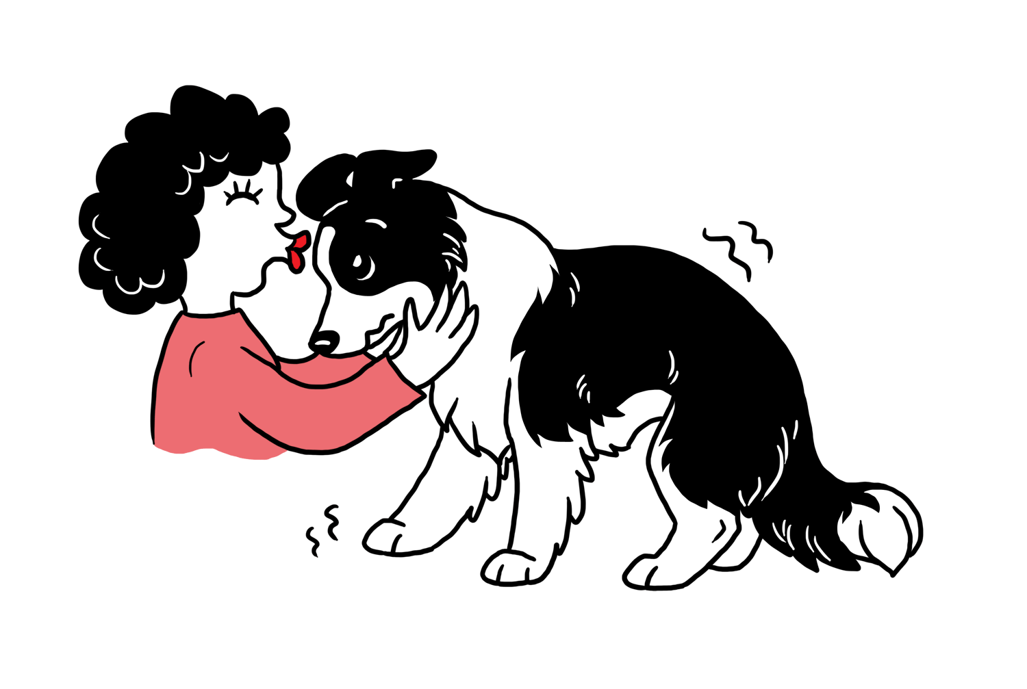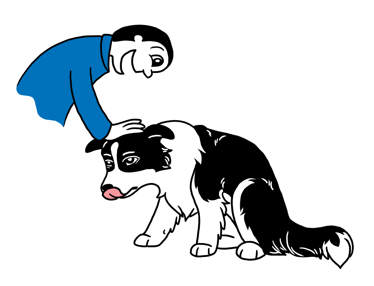 Pes na sliki se oblizuje in sklanja glavo. To so pasji miritveni signali. Trepljanje po glavi večini psov ne predstavlja pohvale ali prijaznega pozdrava, kot pogosto mislimo. Pravzaprav je večini psov to neprijetno. Kadar pa to naredi tujec, lahko to pomeni celo grožnjo. Pes si želi, da človek preneha s tem.