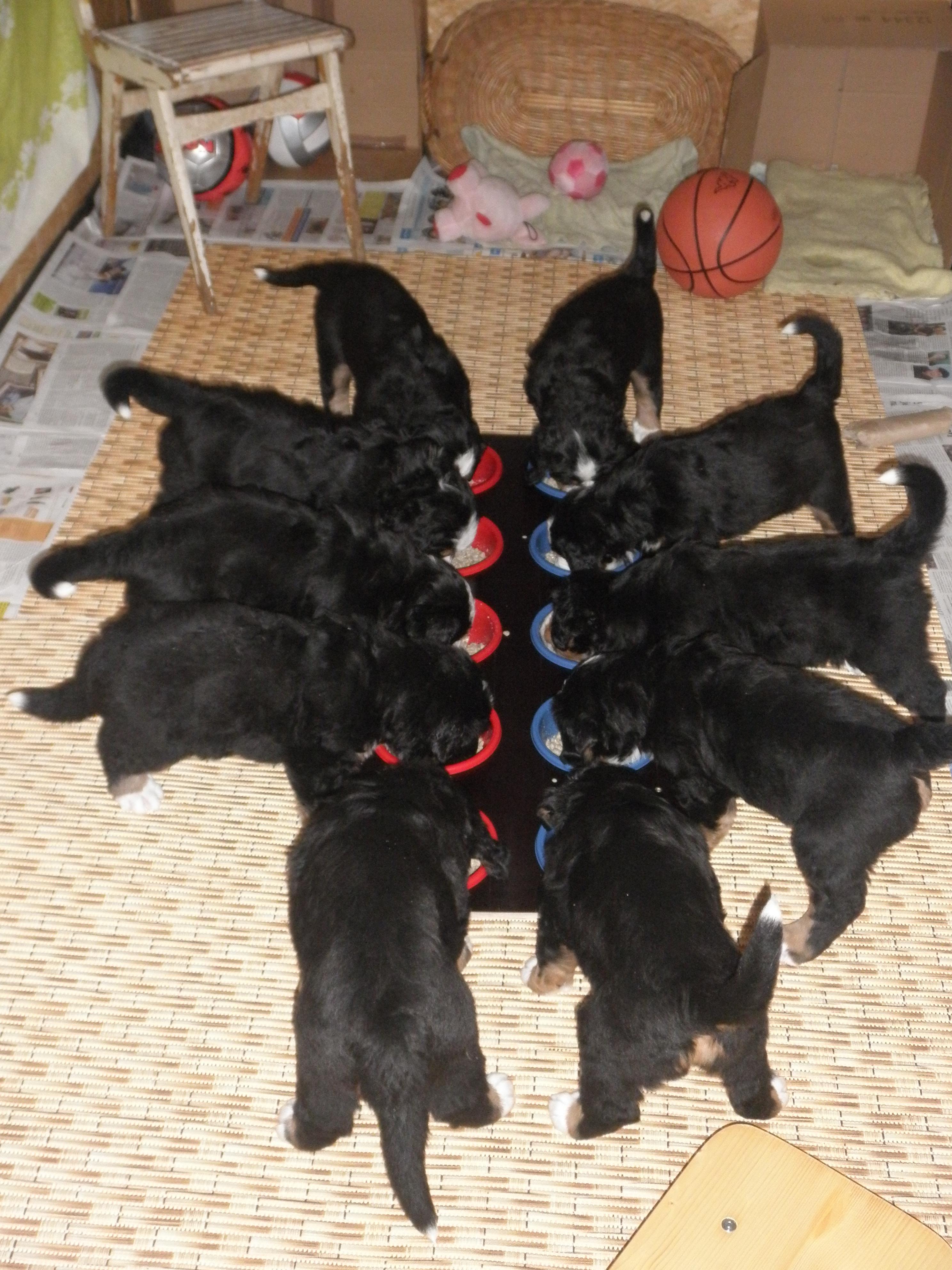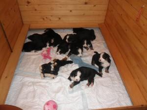 Od izbire vzreditelja do prihoda mladička v novi dom po navadi mine ravno dovolj časa, da nakupimo najnujnejšo opremo: skledo za hrano in vodo, oprsnico, ovratnico, raztegljiv povodec, igračo za preganjanje dolgega časa (npr. žoga, v katero nasujemo priboljške, Kong), igračo za igro To je moje! (npr. pletena vrv), igračo ali priboljške za glodanje (ti so še posebej pomembni ob menjavi zob), priboljške za nagrajevanje, odejico – ležišče, glavnik in krtačo, po možnosti gumijasto, ki odstranjuje odpadlo dlako in masira kožo. Mladička naj doma pričakajo posteljne predloge, ki jih dobimo v vsaki lekarni in s katerimi ob njihovi pomoči mladička učimo sobne čistoče. Če je to lekcijo preskočil pri vzreditelju, nam bodo v pomoč kapljice, s katerimi označimo “dovoljen” začasen prostor za opravljanje potrebe v stanovanju. Pod obvezno opremo štejemo tudi pinceto za odstranjevanje klopov. O izbiri hrane se je treba seveda posvetovati z vzrediteljem. Menjava hrane ob odhodu iz legla ni priporočljiva, če jo nameravamo menjati, naj bo prehod postopen in naj traja vsaj teden dni ali več. Večina novih skrbnikov je neučakana v želji, da bi jih novi družinski član spremljal na sprehodu. Če kje, potem tukaj zares velja: manj je več! Dolžino sprehoda izračunamo po formuli: x tednov starosti mladička = x minut. Za upoštevanje tega merila vam bo hvaležen vaš kuža, še bolj pa njegovo okostje in sklepi.