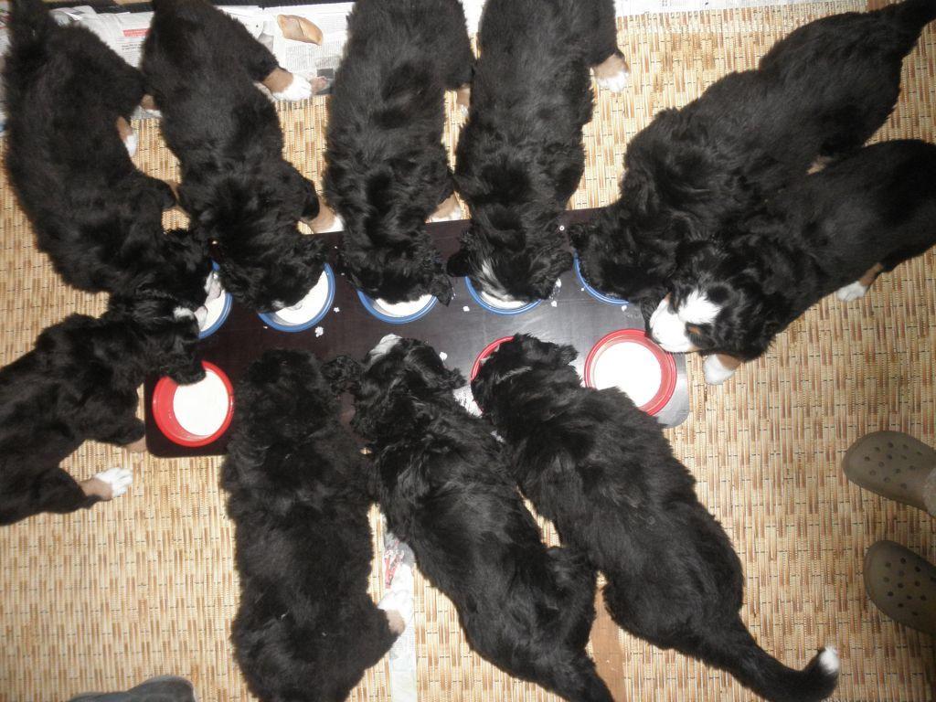 nasa-psicka-bo-mama-1Vzreja najprej vključuje dobra dva meseca skrbi za bodočo mamo s pripravami na porod, po tem pa še prav toliko časa za nego in vzgojo mladičkov. Če je s pasjo mamo in mladički vse v najlepšem redu, to pomeni dva meseca crkljanja in veselih dogodkov, mesec in pol priprave obrokov za mladičke, pospravljanje in čiščenje ter skrbi za primerno socializacijo in habituacijo. Če ima psička premalo mleka za vse mladičke, jih je treba na začetku dohranjevati vsaki dve uri s kakovostnim mlečnim nadomestkom za pasje mladičke. Čeprav ni poceni, domače pripravke odsvetujem.