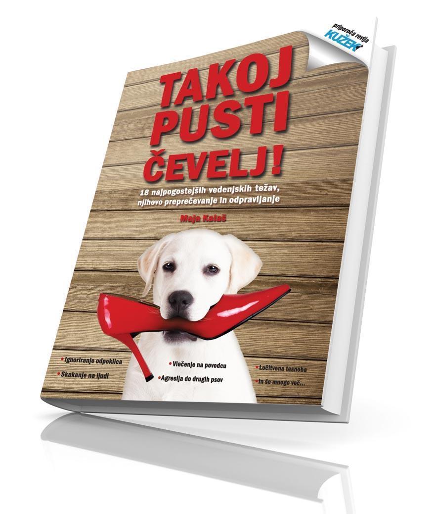 V tem tednu bo na vseh prodajnih mestih že mogoče kupiti najbolj težko pričakovano kinološko knjigo te jeseni: Takoj pusti čevelj! 18 najpogostejših vedenjskih težav, njihovo preprečevanje in odpravljanje. Knjiga je nepogrešljiv priročnik za vsakega skrbnika psa, ne glede na njegove izkušnje s šolanjem in vzgojo psa. V njem je predstavljenih 18 najpogostejših vedenjskih težav, ki se pojavljajo pri psih, ter enostavni in razumljivi napotki za njihovo odpravljanje. Ker pa so pri vsaki od vedenjskih težav predstavljeni tudi njeni običajni vzroki in ukrepi za preprečevanje, lahko ta praktični priročnik najde mesto na knjižni polici prav vsakega skrbnika psa. Če se skrbniki naučimo prepoznavati vedenjske vzorce, ki lahko vodijo v neželena vedenja ter prepoznamo lastne napake, lahko uspešno preprečimo, da bi pes sploh razvil vedenjske težave.
