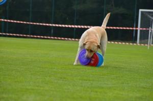 Vodnik in pes imata na voljo en frizbi. Vodnik mora frizbi v najkrajšem času dvakrat vreči čez označeno linijo. Pes mora čim prej ujeti frizbi in ga čim hitreje vrniti vodniku.