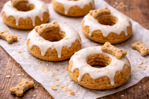 Med pustom lahko tudi pse vključimo v praznično dogajanje, vendar na varen način. Ti pasji pustni krofi so pečeni v pečici, brez sladkorja in brez škodljivih sestavin, hkrati pa po videzu spominjajo na prave krofe, ki jih jemo ljudje.