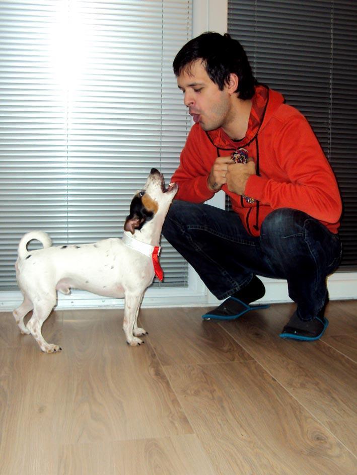 ‒ Motiviramo ga z navdušenim lovljenjem žoge, mečemo jo ob tla ali ob steno ter si prizadevamo, da s svojim vedenjem izzivamo pasjo tekmovalnost.