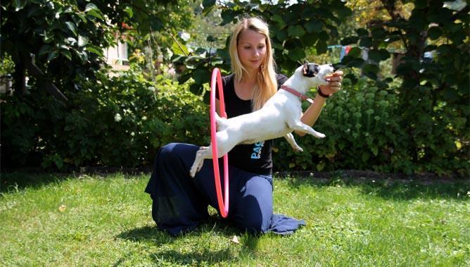 V preteklih rubrikah smo razvili veliko različic skokov (v naročje, skozi roke, čez koleno, v zrak), zato bomo za primer vaje trik nadgradili in mu dodali dva različna predmeta, ki bosta pripomogla k zanimivosti.