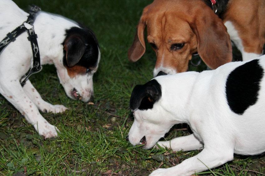 - Vaji v hiši sledi nadgradnja zunaj. Na dvorišču nastavimo kost, da bo pes imel občutek, da jo je našel in je zato njegova. Spet zahtevamo, da jo izpusti in ga nagradimo z nečim boljšim. Za vajo na odprtem uporabimo sledni povodec, saj lahko pes večje območje izkoristi za izmikanje in bežanje pred nami, dokler najdeno grize.