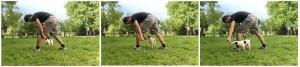 • Za manj dojemljive pse lahko vajo izvajamo postopoma. Najprej ga naučimo prehoda z leve strani na desno in potem nasprotno.