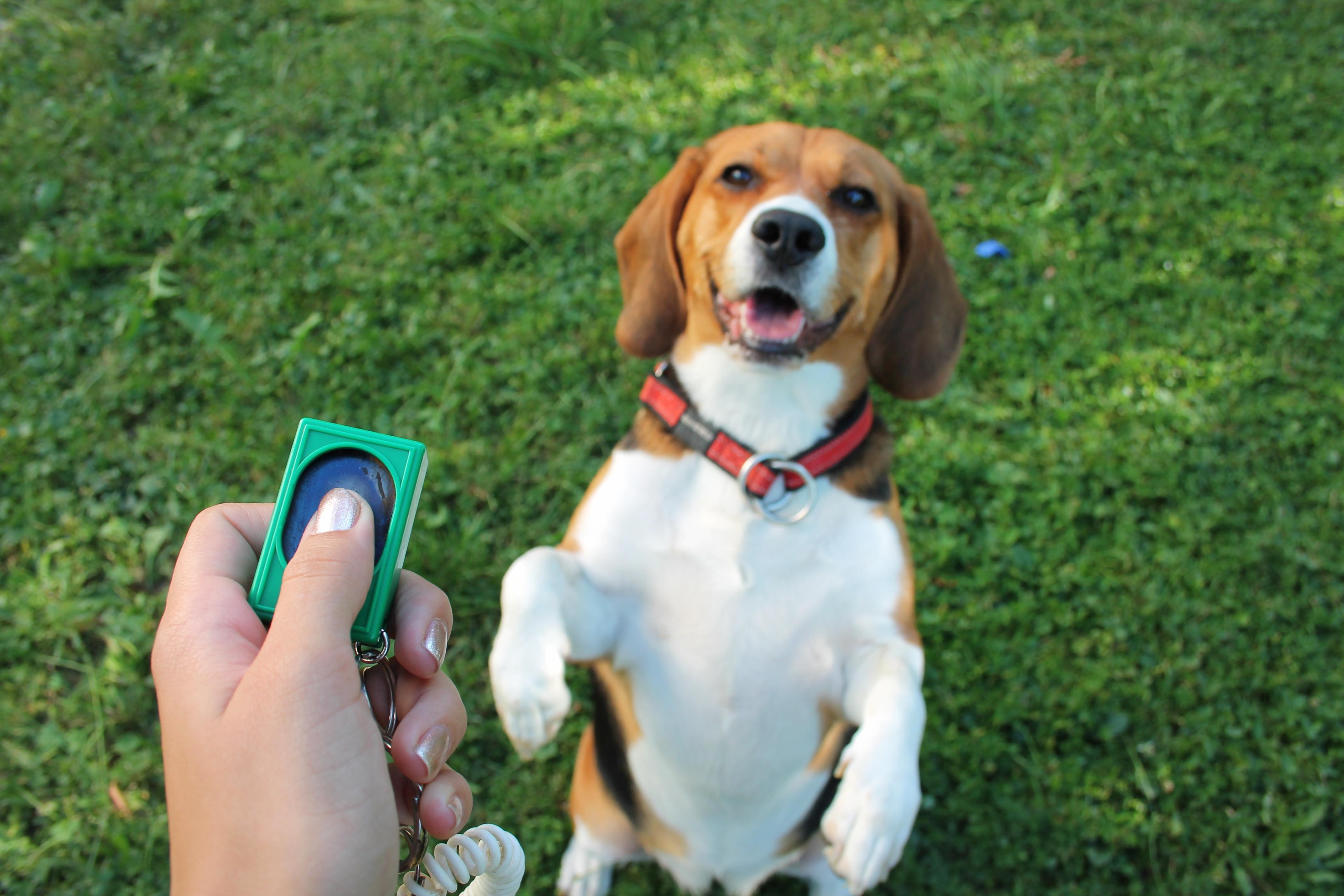 Za učenje trikov je najbolj priporočljiva uporaba klikerja, napravice iz plastike in kovine, na voljo v vseh trgovinah za hišne ljubljenčke. Gre za preprosto iznajdbo, ki se je na področju treniranja živali izkazala za zelo uspešno, še posebej pri učenju bolj zapletenih vaj. Uporabljajo ga tudi pri učenju mačk, ptičev, delfinov, tigrov, rib in drugih živalih. Sama uporaba je zelo enostavna, saj že sam pritisk na napravico povzroči glasen “klik”, ki označi trenutek, ko žival naredi želeno dejanje. Klik ni nagrada, temveč le informacija, da je nagrada na poti. Pes je zanj dojemljiv, ne glede na starost, velikost ali pasmo.