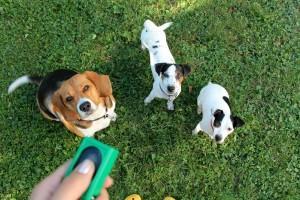 Preden začnemo uporabljati kliker, moramo psa naučiti, da je »klik« pozitivna reakcija na njegove odzive. V žargonu pravimo, da psa »naklikamo«.