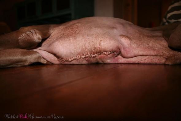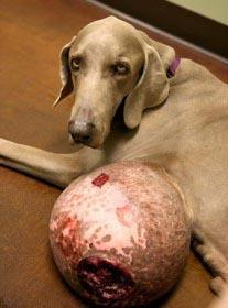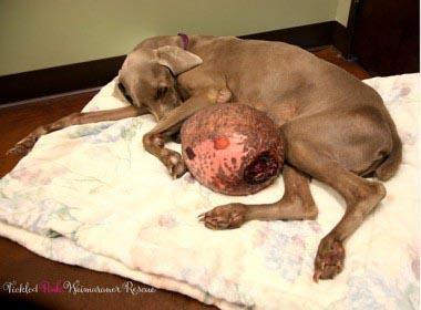 gigantski-tumor-pri-psuKo je bil Gilbert Grape pripeljan v zavetišče, so bili uslužbenci šokirani, saj tako velikega tumorja pri psu še niso videli. Gigantski tumor, težak kar 5,4 kg, ki ga je kot svojo smrtno obsodbo na prsih nosil pes pasme Weimaranec, poraja vprašanje, kako je sploh lahko zdržal tako dolgo.