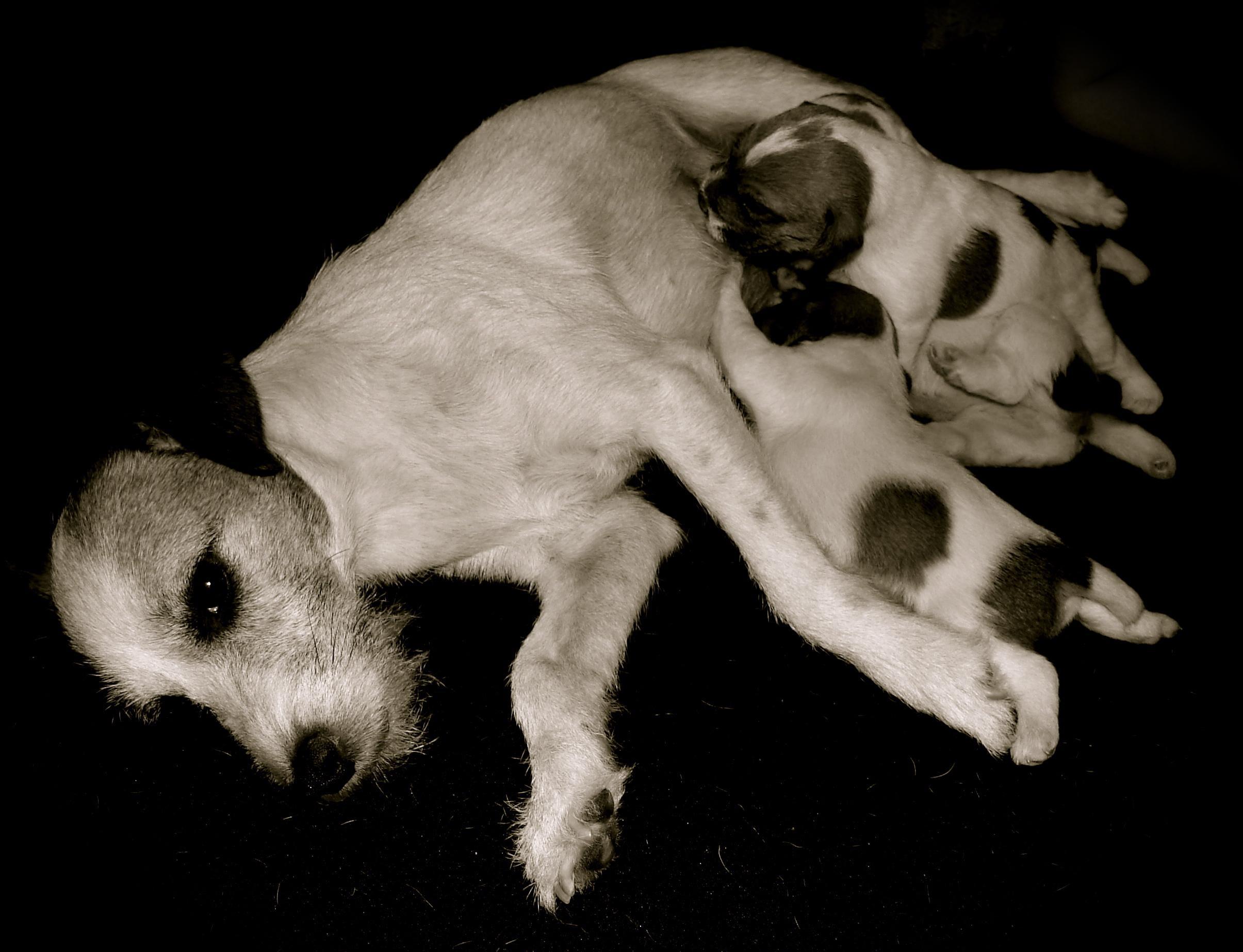 Naša psička ima ljubke mladičke, stare dva tedna, kar naenkrat pa z njo nekaj ni v redu. Je čisto brez energije in ne more vstati. Zelo zaskrbljeni jo odpeljemo k veterinarju. Po pregledu ugotovi, da gre za poporodno mrzlico, ker ji manjka kalcija. Kako to, saj smo ji že med brejostjo dajali hrano za mladičke?