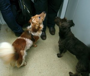 • Ko čakate na dvigalo, ne stojte s psom preblizu vrat dvigala, tako, da pred vstopom v dvigalo omogočite ljudem (ali psom), ki so v dvigalu nemoten izstop.