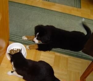 Skrbnik nadaljuje tam, kjer je prenehal vzreditelj, vsekakor po enakem receptu in z enako vrsto hrane. Če se jo odloči iz kakršnegakoli razloga zamenjati, je to potrebno storiti postopoma. Menjava hrane naj traja teden dni, s tem da se razmerje nove vrste hrane veča v škodo stare. Po dvanajstih tednih starosti damo mladičku od tri do štiri obroke dnevno. Od pol leta do enega leta starosti psičkom damo dva do tri obroke dnevno.