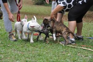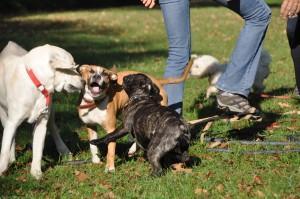 Psi so družabna bitja, kar pomeni, da se družijo med seboj. Tudi vloga psa se je spremenila – postal je naš družabnik, ki je vedno z nami. Na sprehode hodimo v parke, družimo se z ljudmi, ki imajo kužke. Zato je najpomembnejše, da mladička naučimo pravilne igre s psi, ki se je lahko naučimo le, če je le-ta v pasji šoli nadzorovana in vodniki aktivno sodelujejo v njej. Zmotno je prepričanje, da se bodo psi zmenili sami med seboj. Da, se bodo, ampak na pasji način. En se bo podredil in bo v redu. Toda ko bo malo zrasel, se ne bo več podredil in ne bo več v redu. Največ pasjih ugrizov se zgodi med 6. in 10. mesecem. Šestmesečni kužek se še vedno obnaša kot mladiček in skače po vseh psih in jih grize. Toda ta pes ne diši več kot mladiček in ga odrasli psi ne jemljejo več kot mladička, ampak sebi enakega psa. V svetu odraslih pa veljajo pravila. In ker jih nismo kužku privzgojili mi, ga starejši vzgojijo po pasje – z ugrizom.