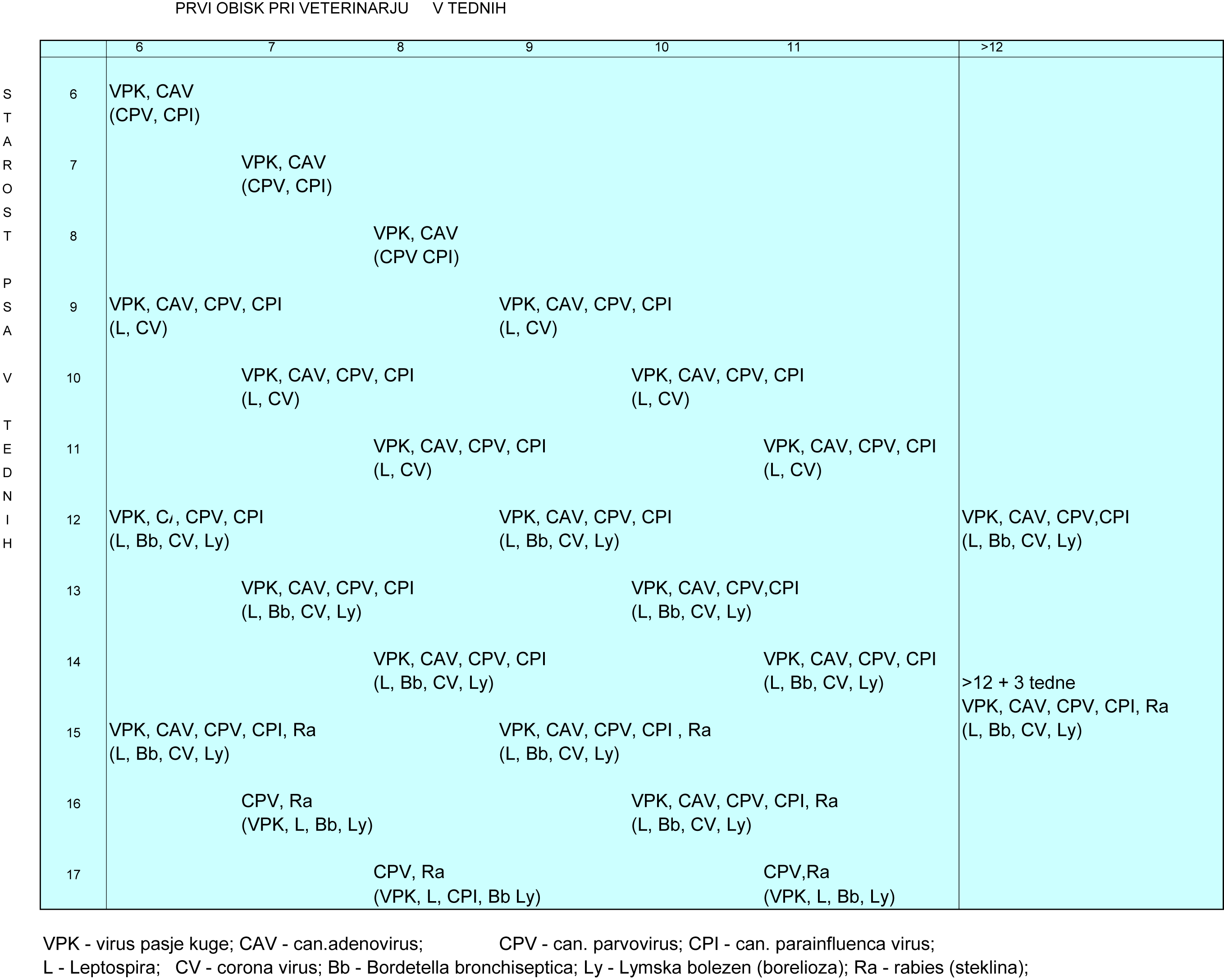 Proti leptospirozi, coronavirozi in boreliozi cepimo prvič šele po 9. tednu starosti, ker lahko prej nastopijo alergijske reakcije.