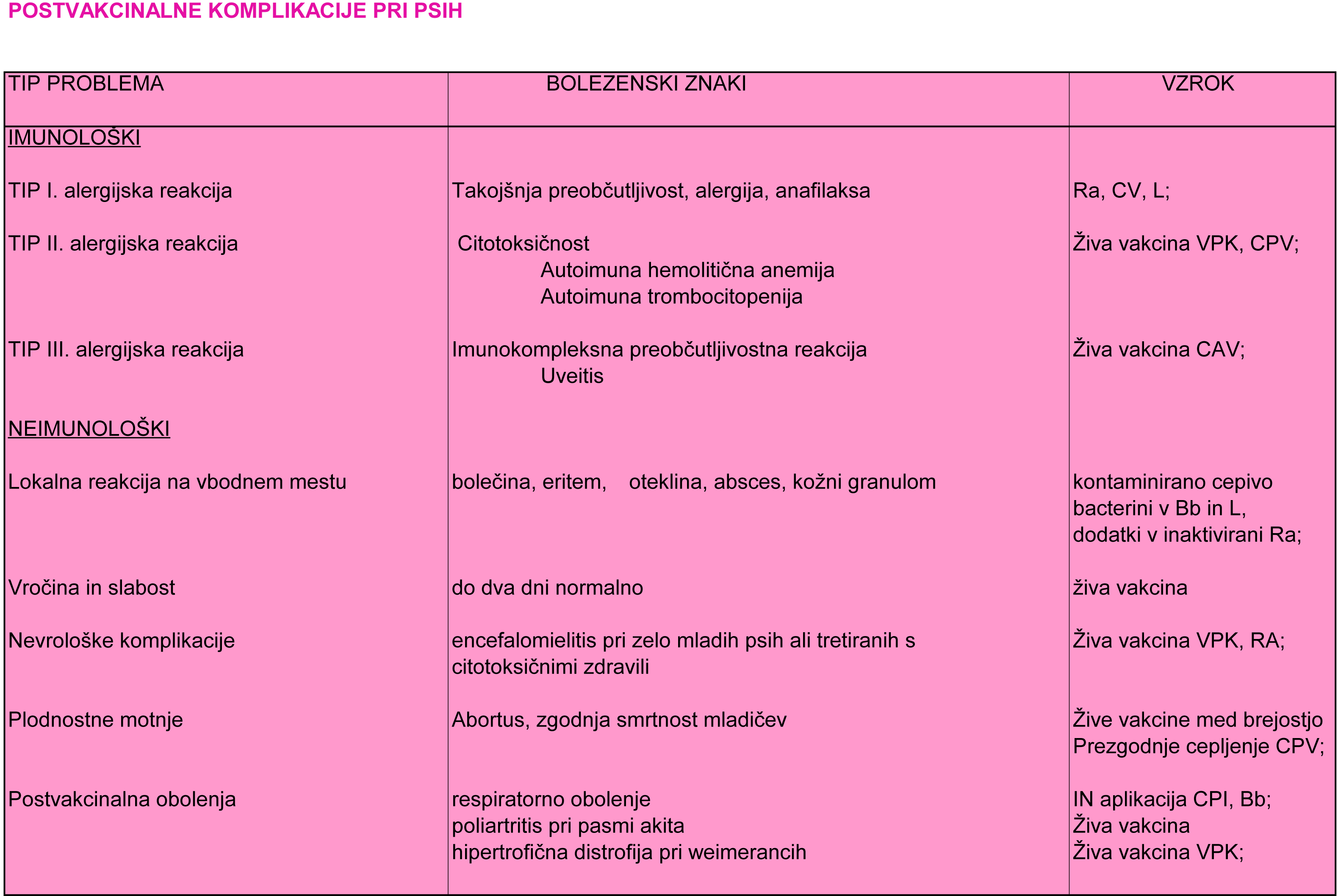 Poznamo več vrst imunoloških in neimunoloških postvakcinalnih reakcij. Dobro je, da je lastnik z njimi seznanjen, da jih lažje in hitreje odkrije ter pravočasno poskrbi za ustrezno pomoč veterinarja.