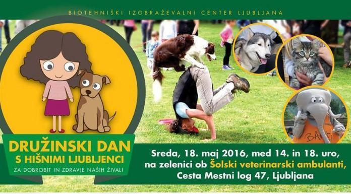 Dijaki in mentorji Biotehniškega izobraževalnega centra Ljubljana - BIC Ljubljana, Gimnazije in veterinarske šole na Cesti v mestni log 18. maja na zelenici ob Šolski veterinarski ambulanti med 14. in 18. uro prirejajo že drugi Družinski dan s hišnimi ljubljenci.